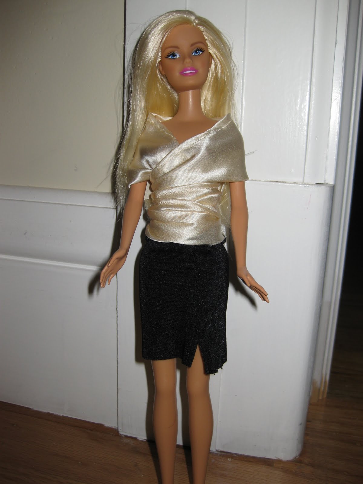 I am sending an updated wrap silk blouse, paired with a black skirt down the runway. I added a small side slit for extra detail. The look is a little sexy, but not vulgar. (that’s what Michael Kors said) I picture this as a work outfit. For night, the blouse can be worn more off the shoulder. And the animal print shoe. What’s not to like?
