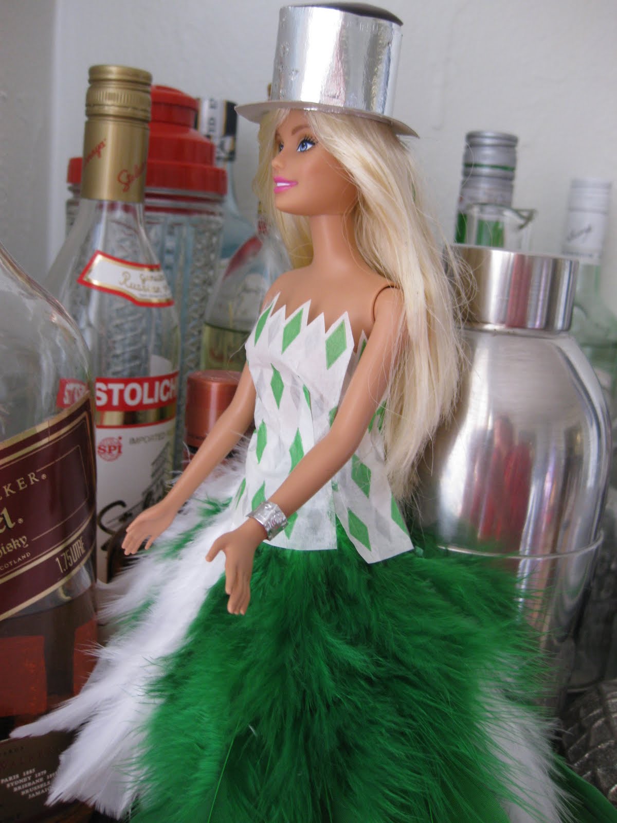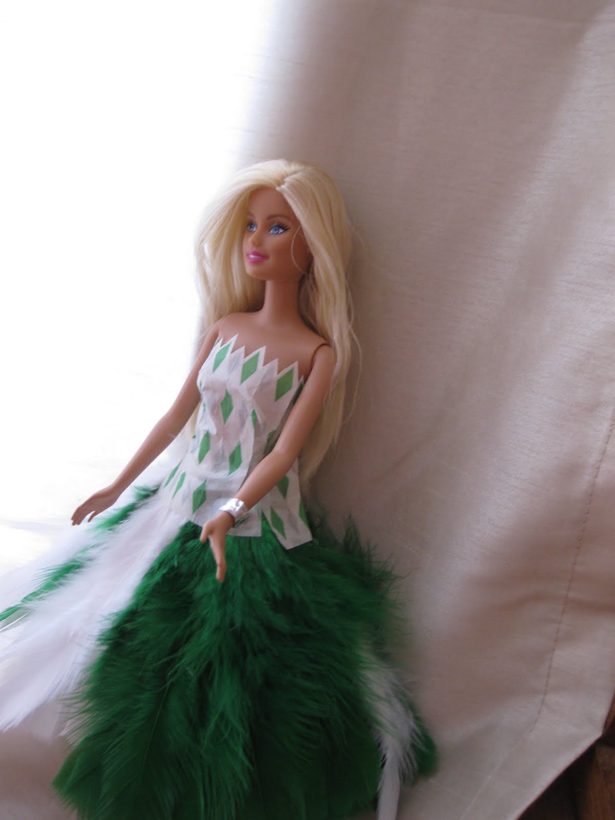 (I think it would have come out much differently if the feathers were proportional, and not just “long”. But I did not have enough feathers to cut them all down to ‘size’ and then arrange them into a skirt. Alas, here it is.)